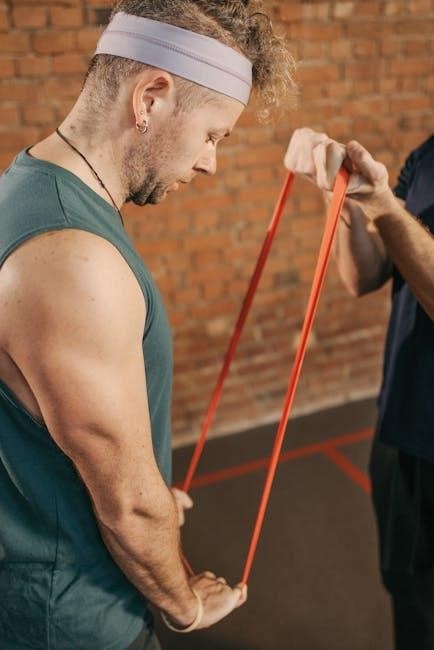 Remember to maintain proper form and avoid overextending. These stretches, often detailed in PDF workout plans, prepare your muscles for the demands of the full-body resistance tube routine, maximizing performance and minimizing the risk of strains or injuries.